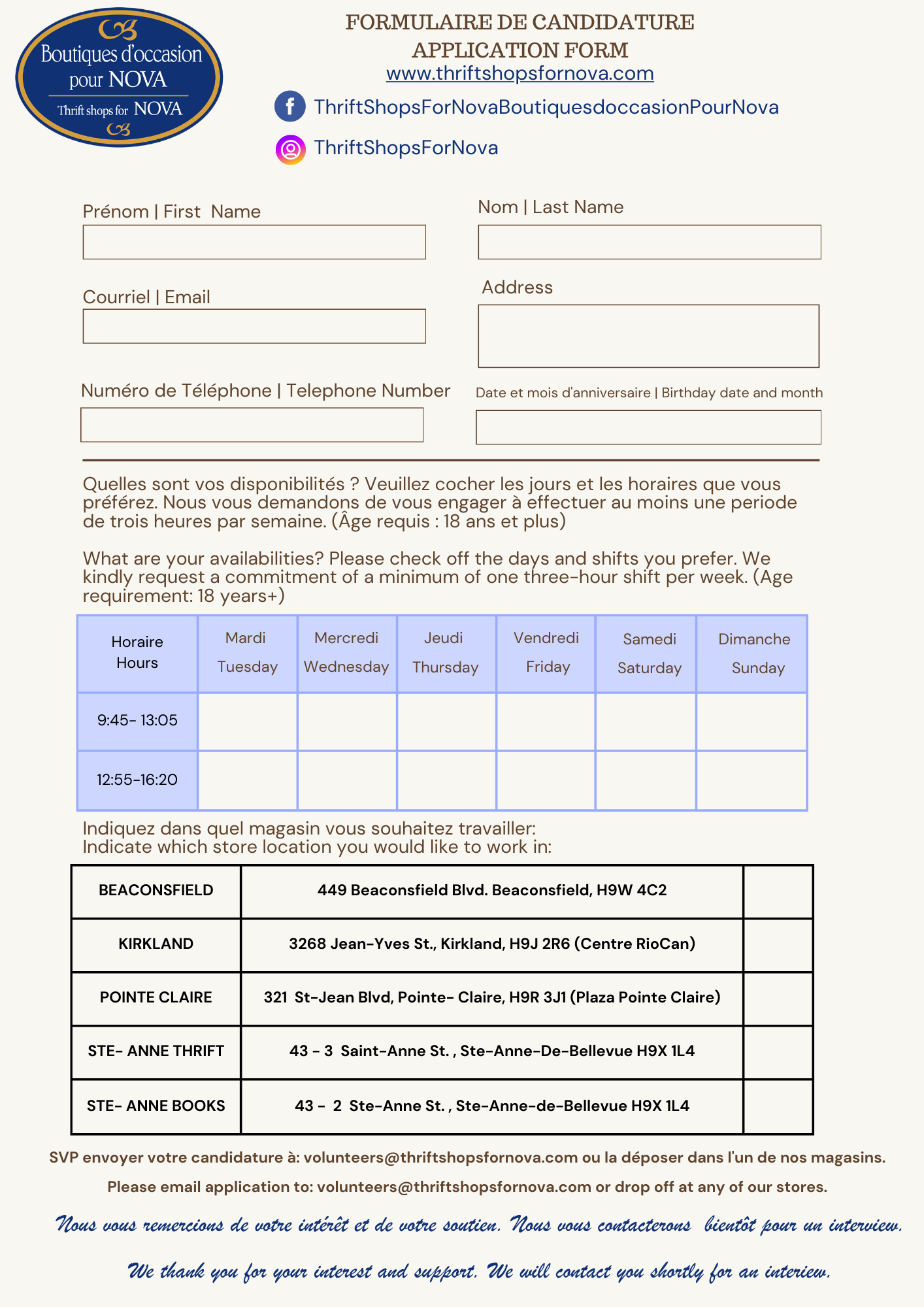- You can also email completed form to: volunteers@thriftshopsfornova.com